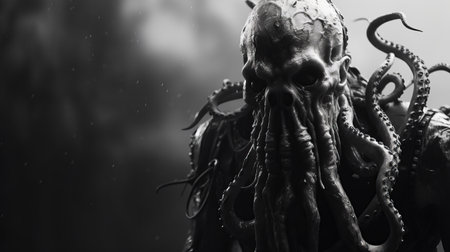 a lovecraftian-inspired wallpaper for android devices, featuring a detailed character design in black and white realism. shot on 70mm film, this wallpaper showcases a selective focus and realistic hyper-detailed rendering, creating a captivating and immersive experience. perfect for those who appreciate the dark and mysterious aesthetics of lovecraftian art. ai generated