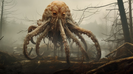 Octopus in the forest. Toned image. Vintage style.