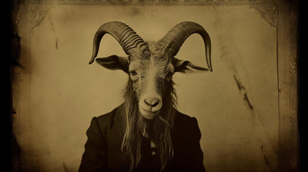 this vintage calotype print showcases a majestic 19th century goat in exquisite detail, its textured fur and gentle gaze captured with remarkable precision, evoking a sense of rustic charm and nostalgia for a bygone era of rural simplicity and traditional farming practices. ai generated