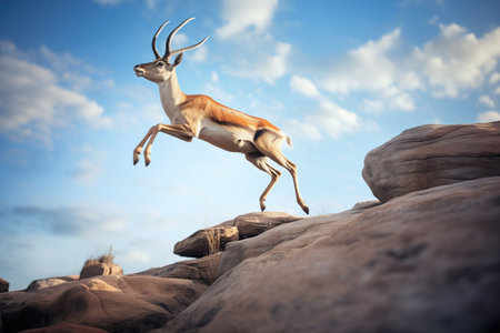 gazelle leaping over rocky terrain