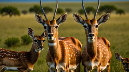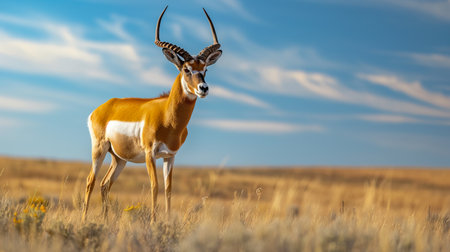 Antelope gazing in the open savannah under blue skies