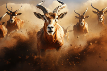 Gazelle in the dust. Wildlife scene.