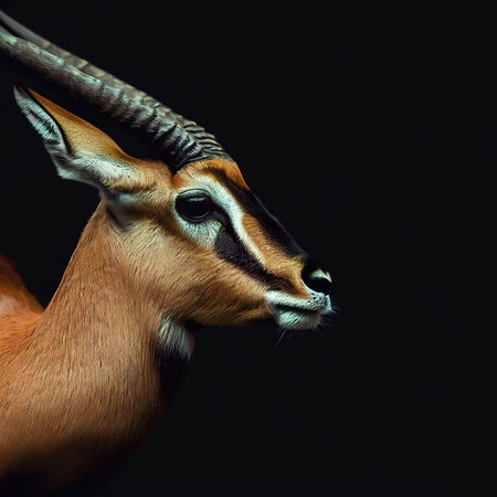 Portrait of an antelope on a black background with space for text