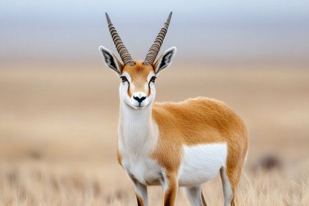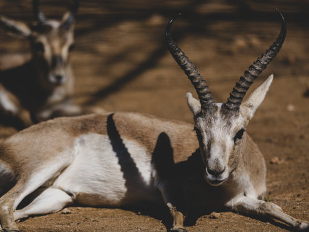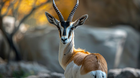 Detailed close-up shot of a gazelle standing in a natural habitat with a blurred background