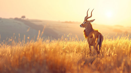 timeless antelope photographed in a leaping pose in a golden plain, in a classic wildlife photography style, with radiant warm tones, backlit glow, high resolution