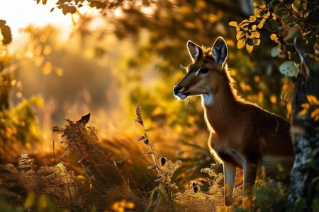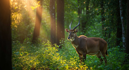 Male antelope in the forest at sunset. Borneo. Malaysia