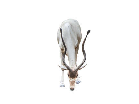 Addax antelope (Addax nasomaculatus) isolated on white