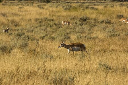 Pronghorn walking in grass, Wyoming, Yellowstone National Park, Taken 08.15