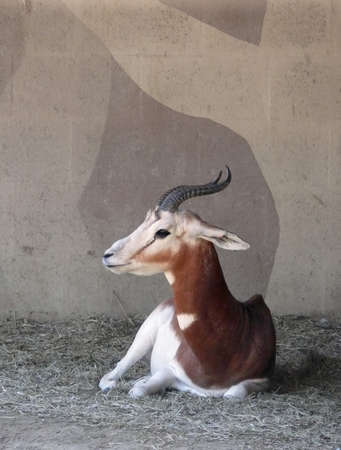 An adult addax in captivity resting in the shade