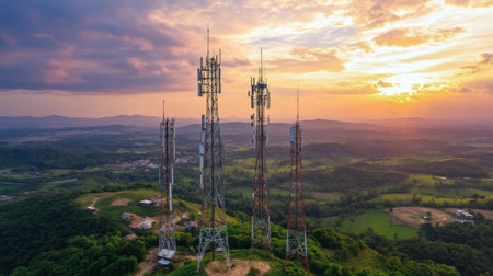 An Innovative communication tower at sunset, showcasing high speed internet technology