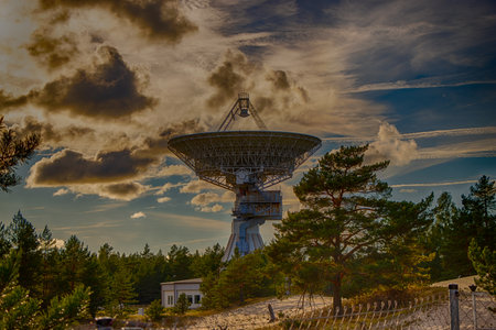 The observatory under the blue sky in the evening, Radio antenna