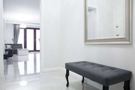 Gray bench in anteroom in luxury apartment