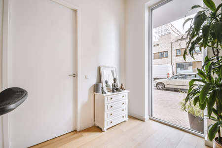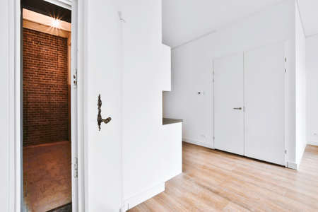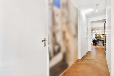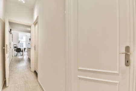 Bright white walls and interior details of modern corridor