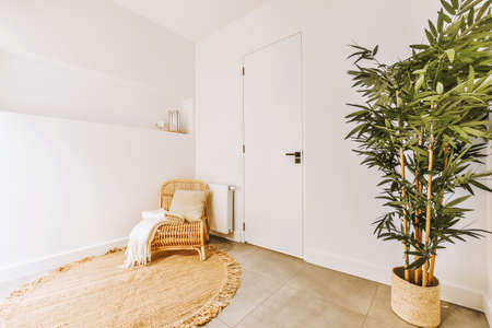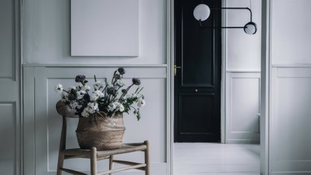 Bright and airy entryway featuring natural decor and cozy textiles in modern home setting