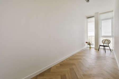 Empty large room of luxury house with wooden flooring and white walls