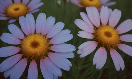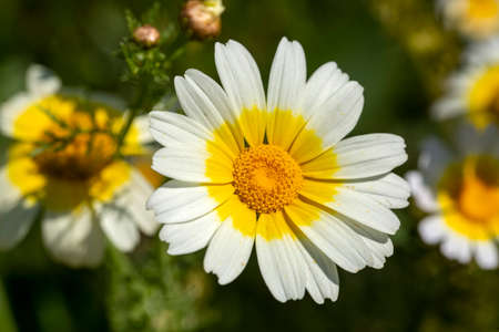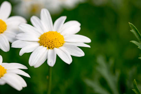 A beautiful daysies flowers outdoors Chamomile in the garden.