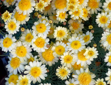 The top view of a flower bed with oxeye daisy