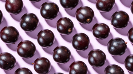 This image showcases an arrangement of dark purple fruits on a soft purple background, emphasizing their glossy texture and organic appeal, perfect for food-related projects.