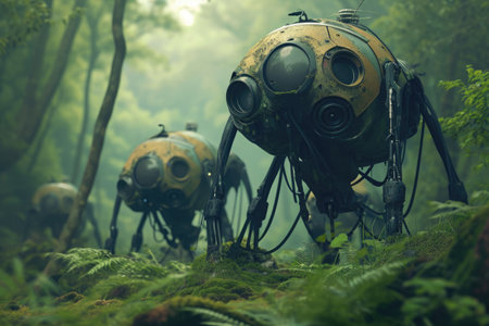 Futuristic Robotic Insects Concept Art Illustration with Mechanical Features in a Surreal Environment AI Generative