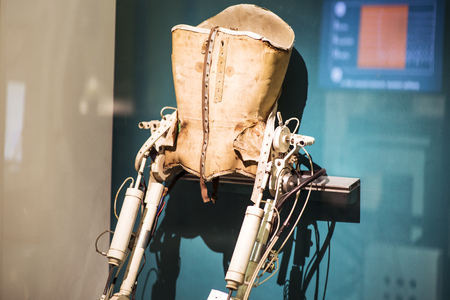 Madrid, Spain - February 24, 2017: Lucy skeleton, a female of the hominin species Australopithecus afarensis at National Archeological Museum of Madrid