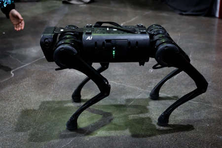 Robot dog like Boston Dynamics at the festival of robots. Almaty, Kazakhstan - February 19, 2022