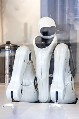 Robot barista, contactless service, Robotics. Technology trends in business. A futuristic concept