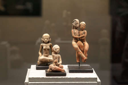 Cairo, Egypt - November 02, 2021: Small Stone Ancient Egyptian figurines and statues in the Cairo Egyptian Museum, the oldest archaeological museum in the Middle East