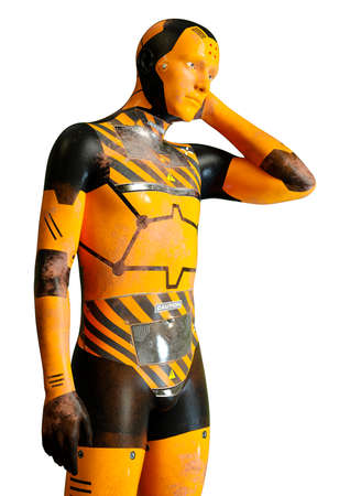 3D rendering of a naked man human being standing and posing with his arms wide spread anatomy Isolated in empty space background. Blank template.