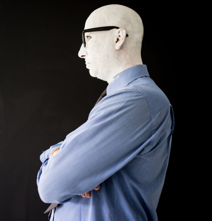 A stark, high-contrast image featuring a white outline of a person against a black background, emphasizing form and anonymity.
