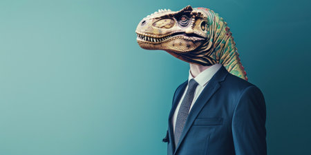 Businessman with dinosaur head in artistic business fashion concept for travel and adventure theme
