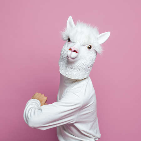 Generative AI, Group of business alpacas or lamas, funny animals. Individuality, independence, think different, creative idea, teamwork and confidence.