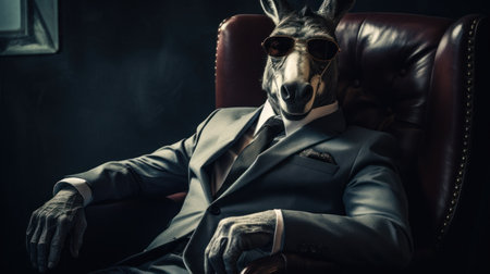 A kangaroo wearing a suit and tie with sunglasses, AI