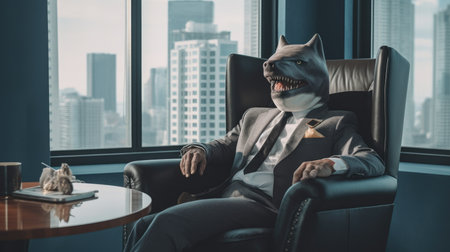 Business Shark In Suit sitting in the office. Generative AI image weber.