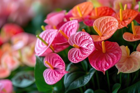 A stunning bouquet of vibrant anthurium flowers in various colors, showcasing the beauty of nature. Perfect for decoration and adding freshness to any space.