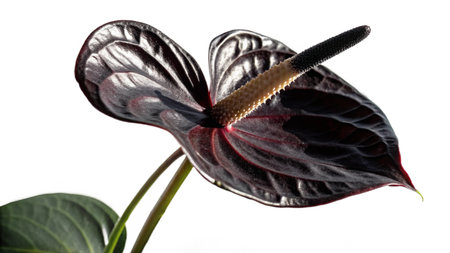 Anthurium Black Queen flower, perennial plant in family Araceae, native to tropical rainforests.