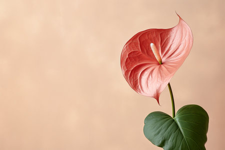 Blooming Anthurium: A Captivating Flower Emanating from a Serene Beige Background