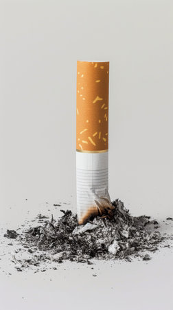A broken cigarette lies on a pristine white background, symbolizing the choice to quit smoking and embrace a healthier future.