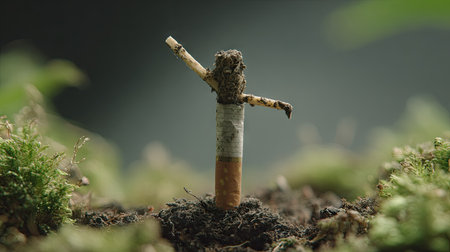 Discarded cigarettes on a running track, symbolizing the challenge of quitting. Highlights the ongoing struggle against tobacco addiction.