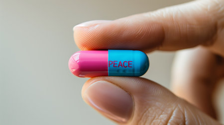 A person holds a blister pack of pills with smiley faces imprinted on them. Pills, pharmacy industry concept background. Generative AI