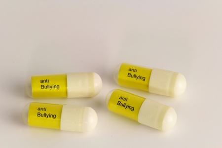 The pills are stacked in the form of a sad smiley on a yellow background. Copyspace