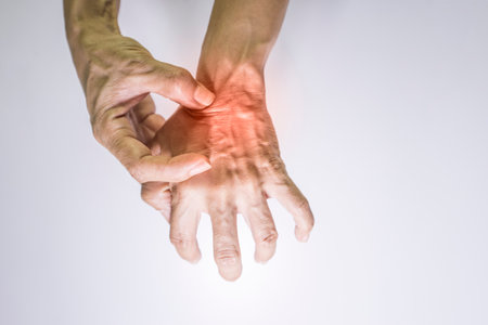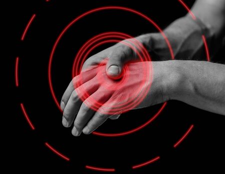 Pain and inflammation of the surrounding muscles and bones Wrist and fingers, health and medical concept