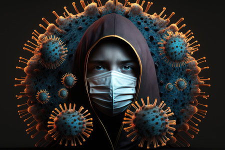Virus and human. Symbiosis. Noncellular infectious agent. Bacterium. Parasites of an alien cell. Infection pandemic. noncellular life form, mmune system. various diseases. Generative AI.