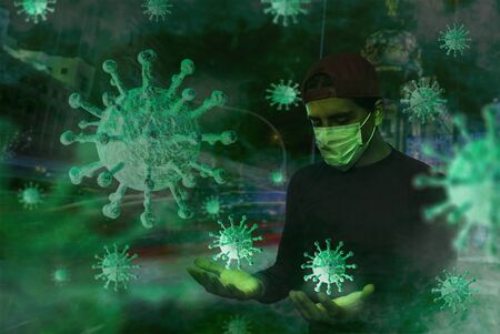 Virus, microscopic infectious agent, nucleic acid, rna dna, introduction into a living cell. Pandemic defense, masks, outbreaks, covid 19 and others. Disease protection.