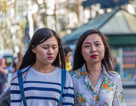 Portrait of two asian women looking at camera in the city