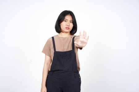 Stop and Rejection Hand Gesture of Beautiful Asian Woman Isolated On White Background