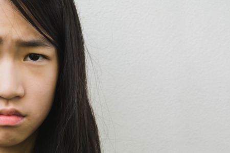 Close up Portrait of Asia young girl beautiful and looking at camera isolated.