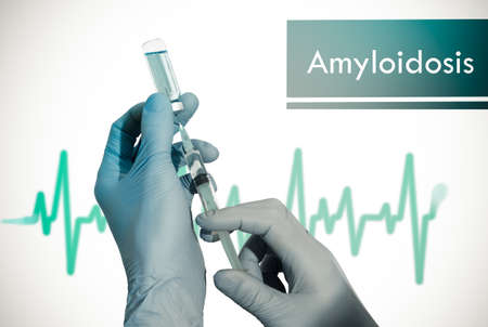 Treatment of amyloidosis. Syringe is filled with injection. Syringe and vaccine. Medical concept.