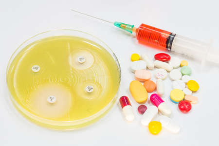 Colorful of antibiotic capsules pills on white background, drug resistance