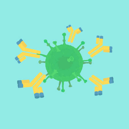 Immunological system, antibodies attacking the virus covid-19. 3D illustration, concept of the body's defense system. Y-shaped antibody attacking the virus.