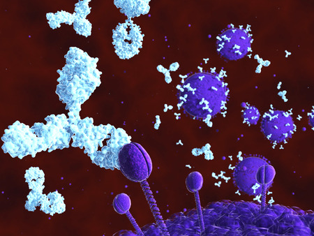 3d rendered medically accurate illustration of a leucocyte and antibodies